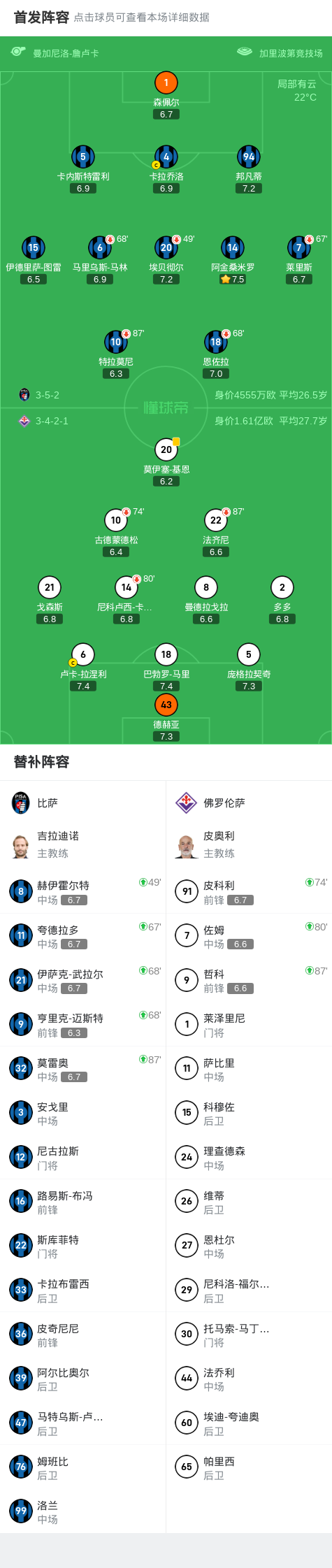 北京時(shí)間9月28日意大利足球頂級(jí)聯(lián)賽 聯(lián)賽 第5輪,比薩主場(chǎng)對(duì)陣佛羅倫薩。最終比分比薩 0-0 佛羅倫薩。